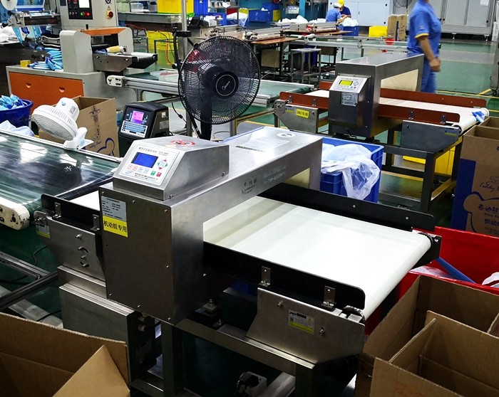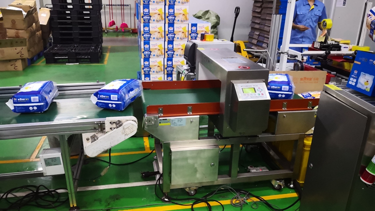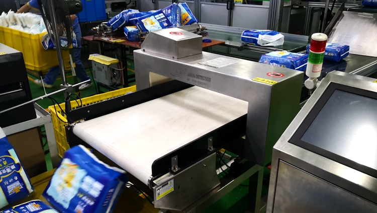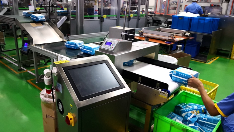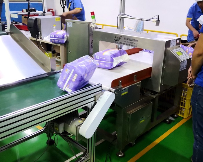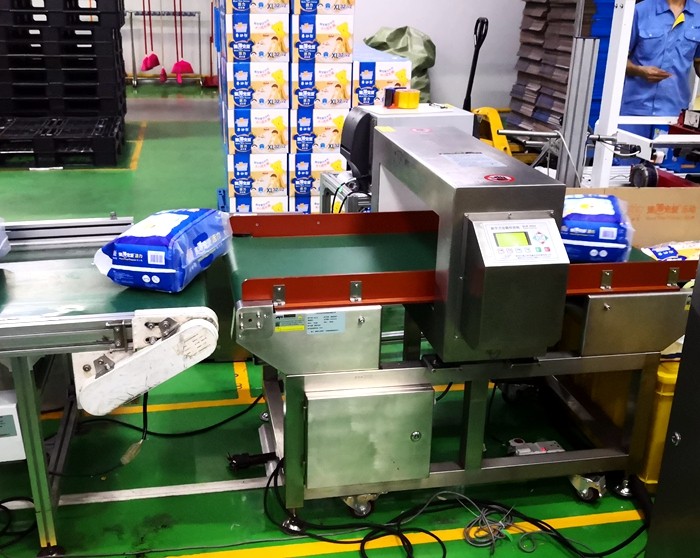 以下為漢氏衛(wèi)生用品紙尿褲生產(chǎn)線使用連之新金屬檢測機的部分現(xiàn)場: